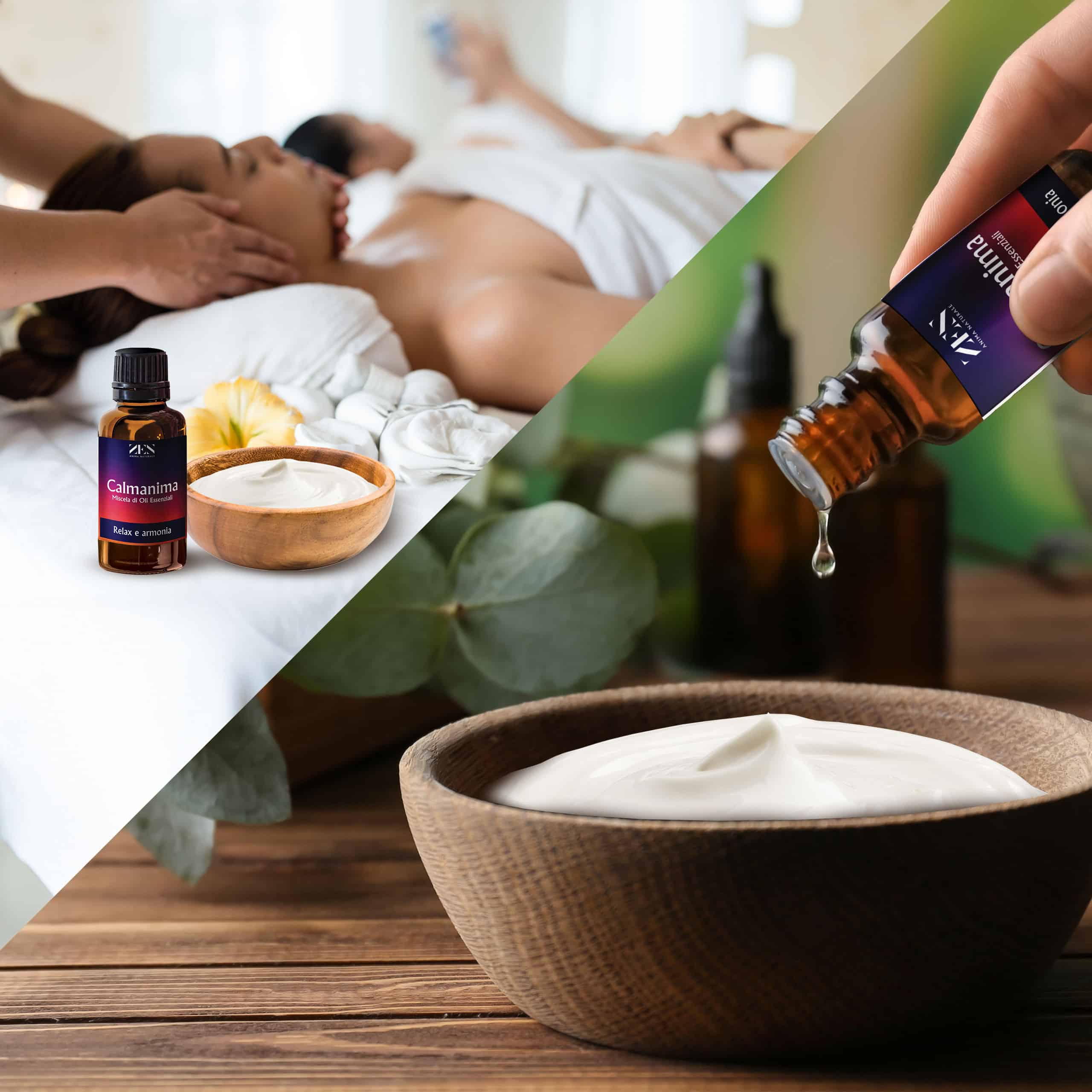 • La nostra Miscela di Oli Essenziali Calmanima, durante un massaggio, riesce ad addolcire la pelle, a lenirla, rinforzarne le difese, idratarla. Contrasta tensioni e malessere accumulato, e porta armonia nella tua giornata grazie al suo aroma dolce e complesso.