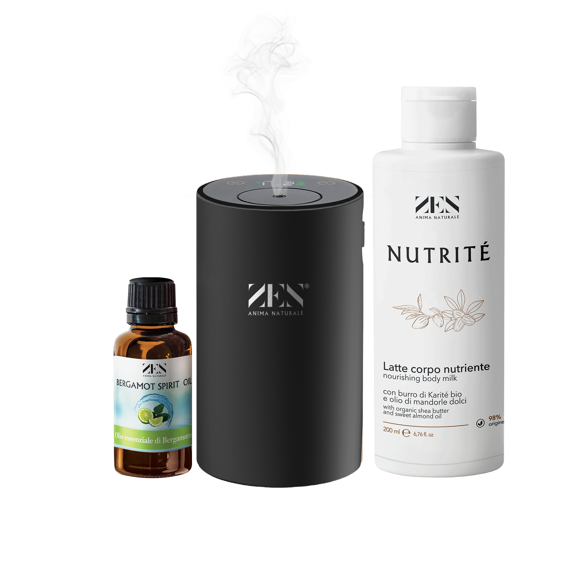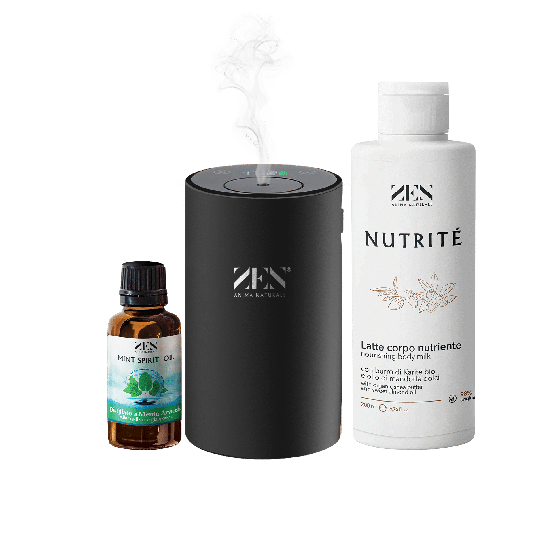 1 OLIO ESSENZIALE 50 ml + 1 DIFFUSORE DI AROMI + 1 LATTE CORPO IDRATANTE NUTRITÉ 200 ml